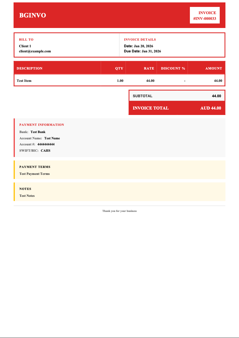 - Yes. BGinvo sends automated overdue reminders to clients so you never have to chase payments manually.